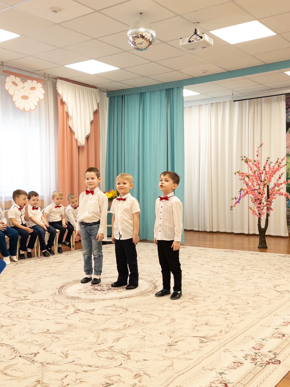 Поздравили девочек, мам и бабушек с праздником весны,проявили большую активность, подарили друг другу хорошее настроение, радость общения и улыбки, весеннее настроение, весёлые детские улыбки зарядили энергией всех участников и гостей детского сада!