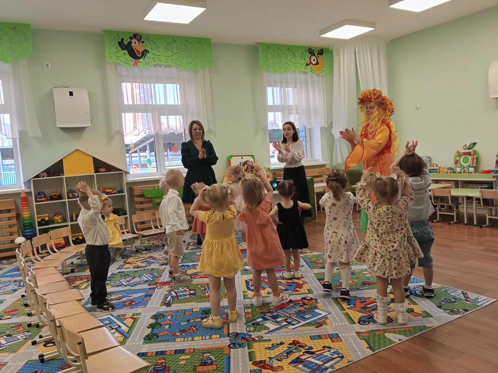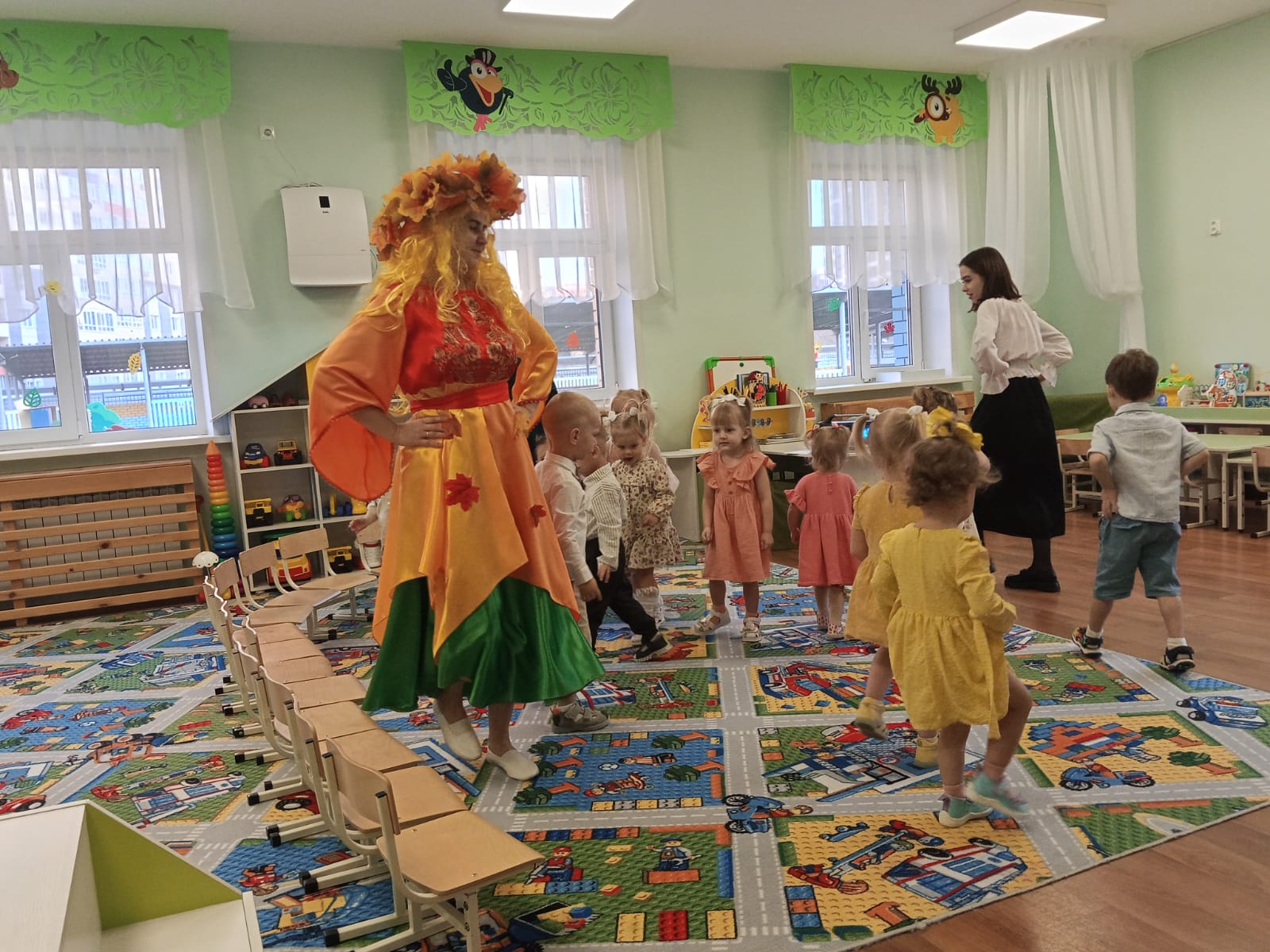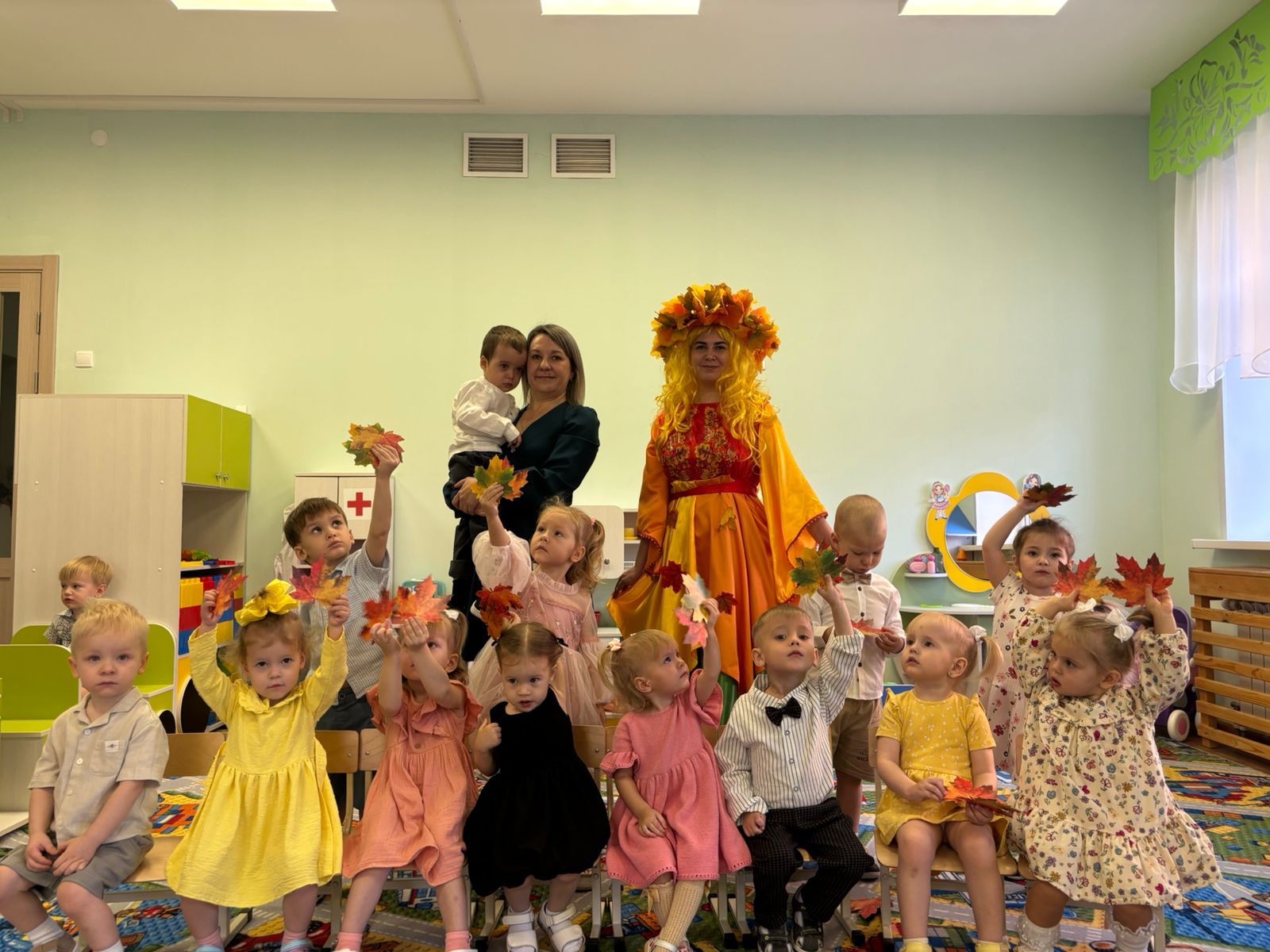 И 30 октября у наших малышей прошел осенний праздник «Здравствуй, осень золотая!». В группе царила теплая, доброжелательная атмосфера. К ребятам в гости приходила красавица Осень. Вместе с хозяйкой праздника дети играли в игру “Солнышко и дождик”, танцевали с листочками и играли с колокольчиками. Мероприятие было веселым, ярким, увлекательным. Дети получили много позитивных эмоций.