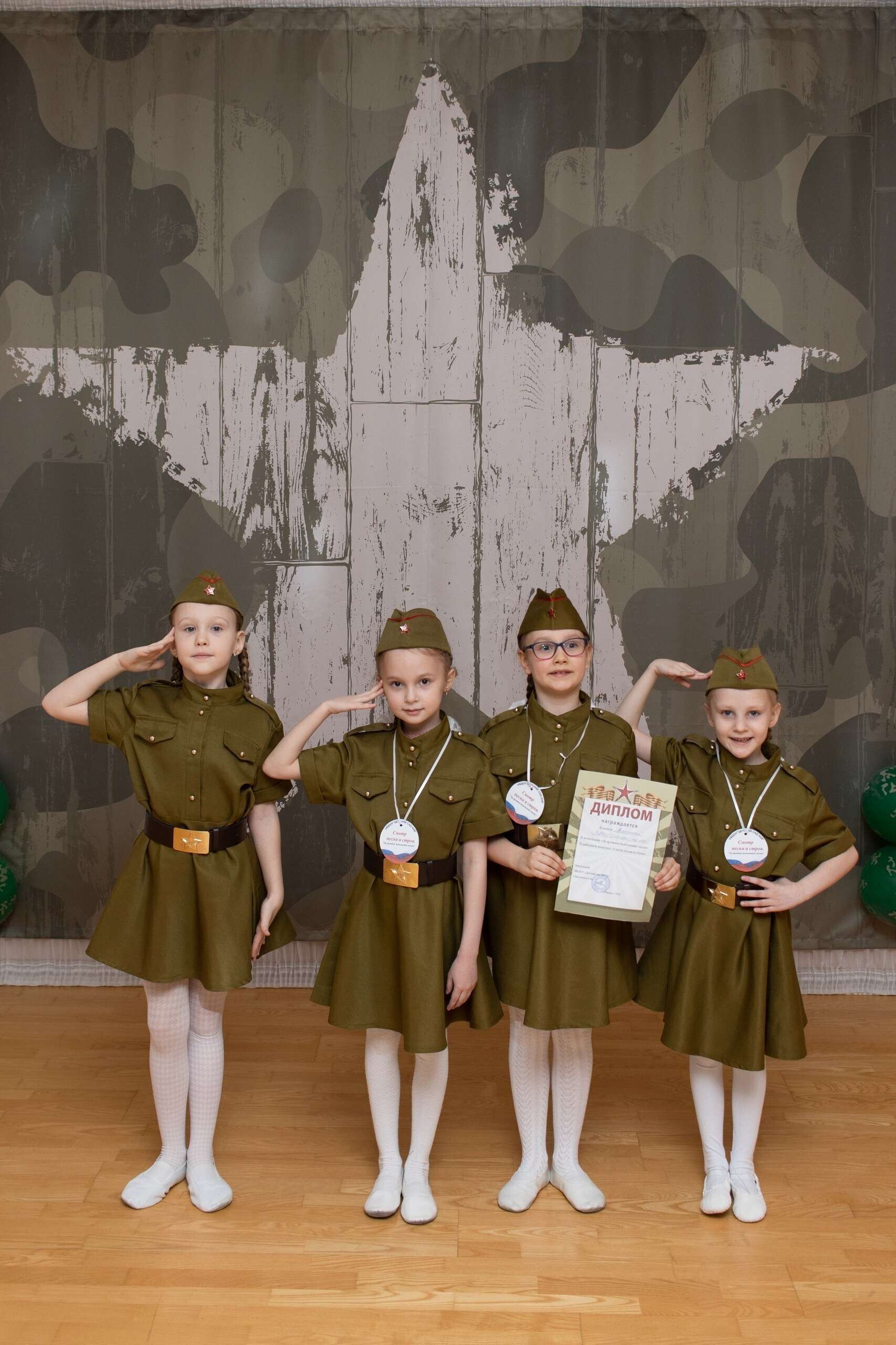 В течение нескольких недель ребята готовились к этому дню: разучивали песню, учились ходить строевым шагом, подбирали соответствующую форму. Каждый участник показал отличную подготовку.