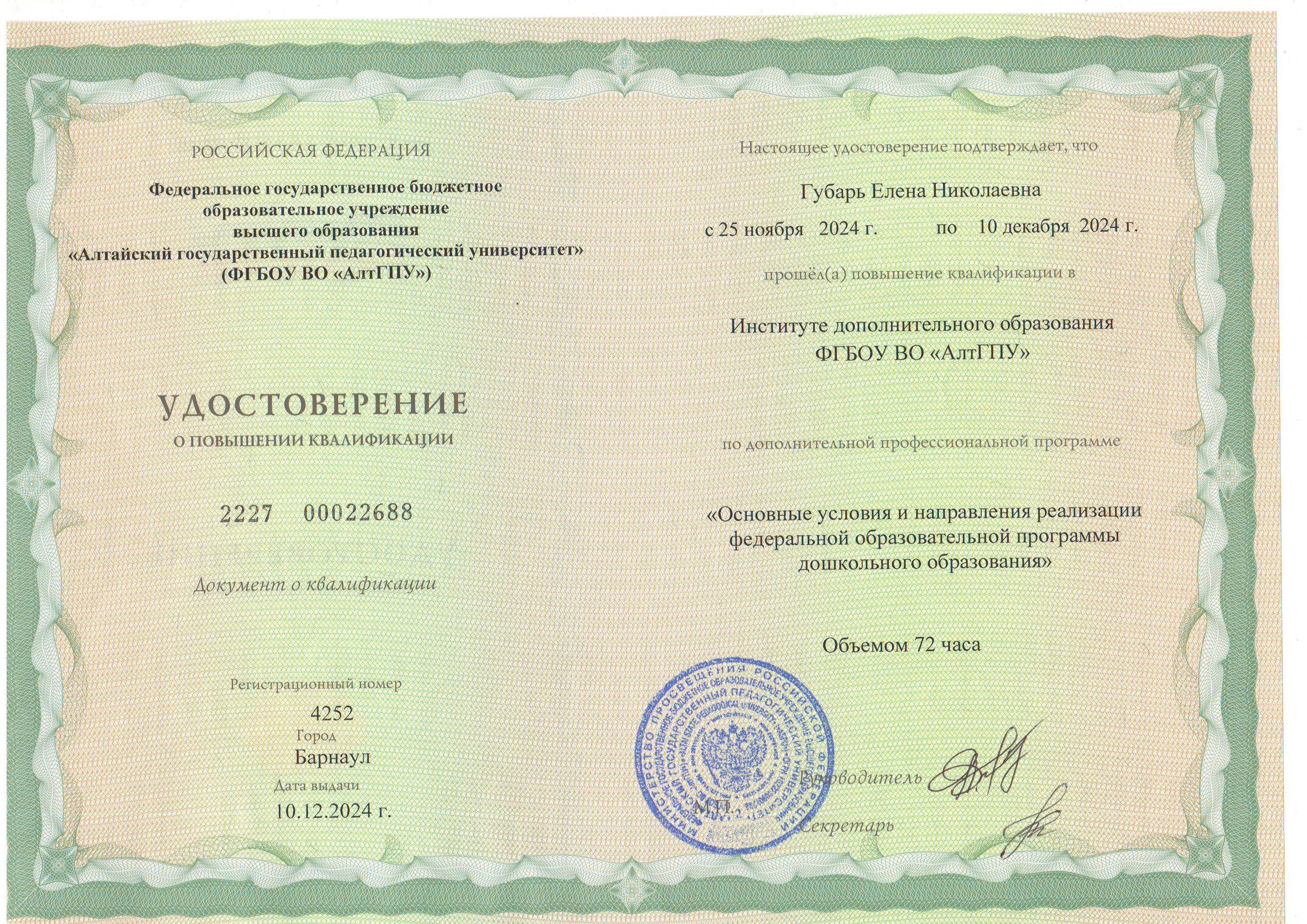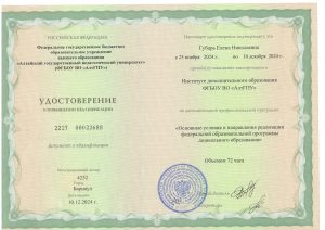 Курсы повышения квалификации : ООО «Байон» 13.12.2021 г. (36 ч) «Теория и методика развития дошкольника для организации образовательной деятельности в дошкольных организациях с учетом ФГОС ДО»
