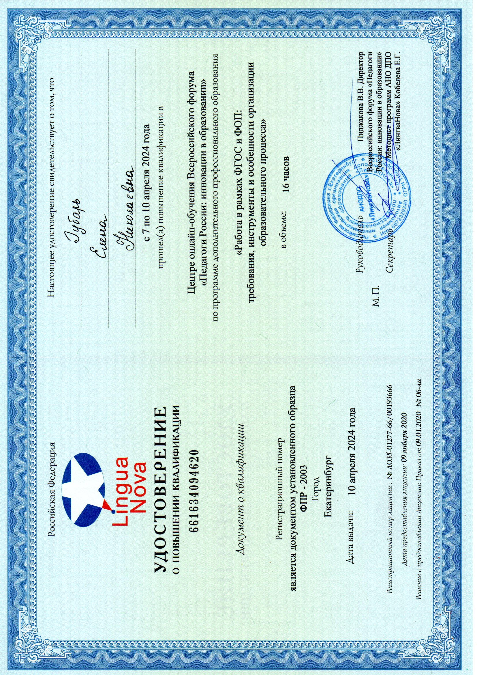 Достижения педагога