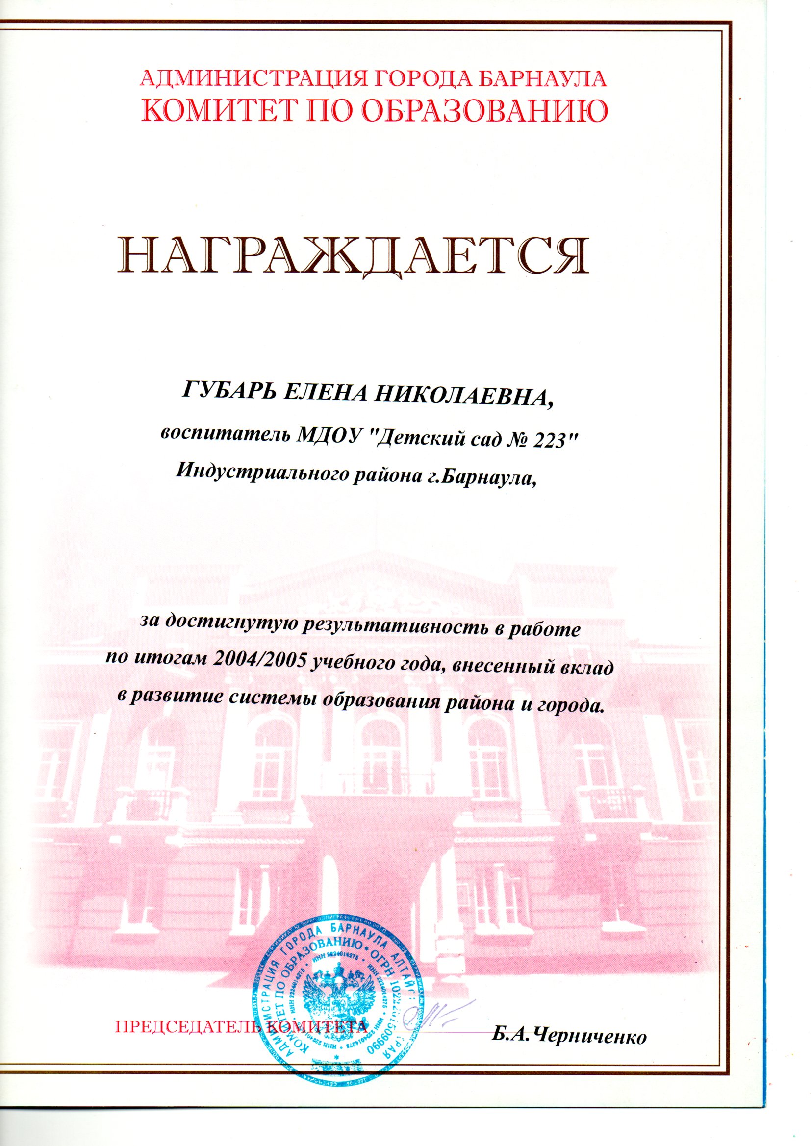 • комитет по образованию Барнаула