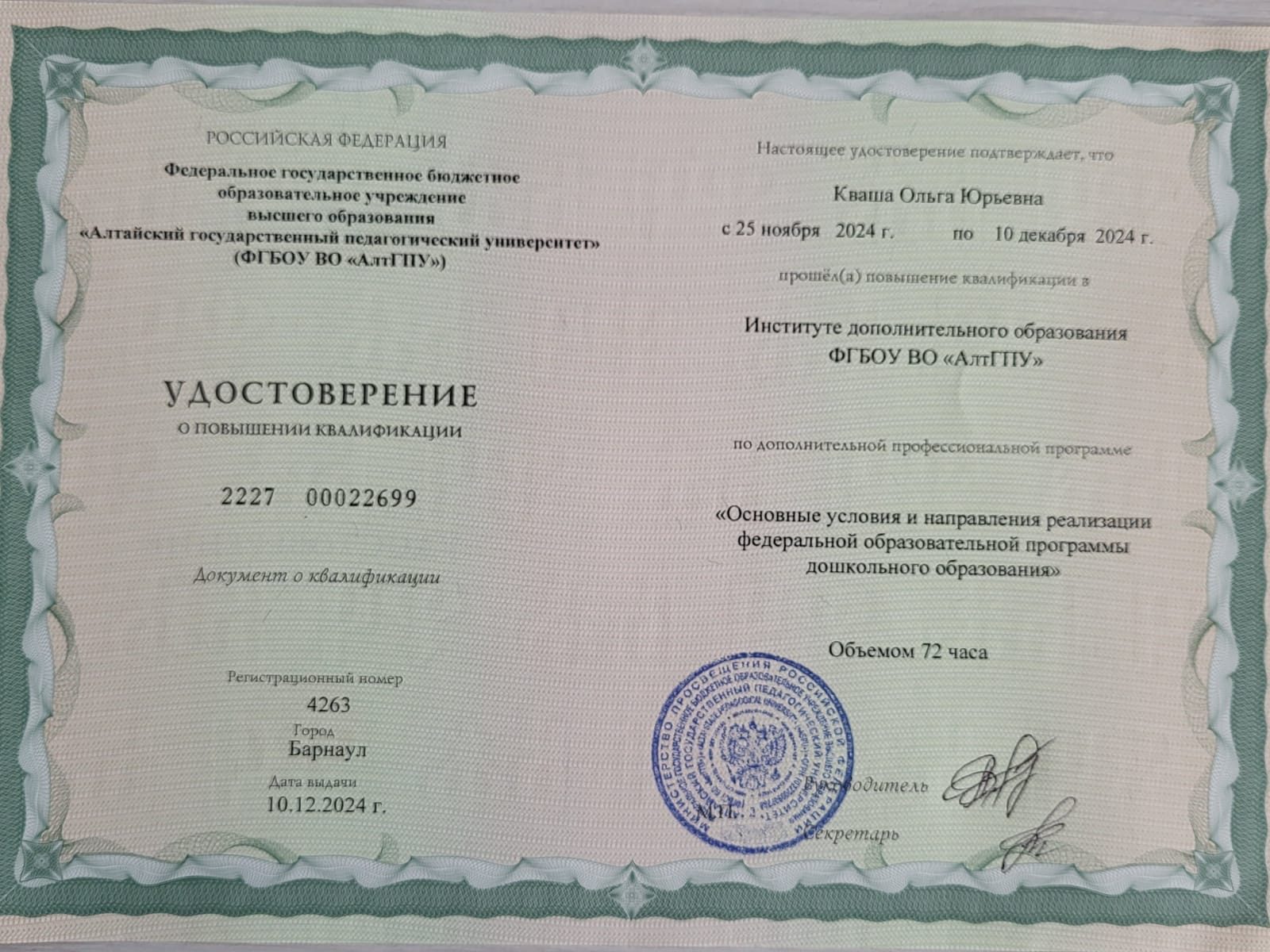 Удостоверения о повышении квалификации